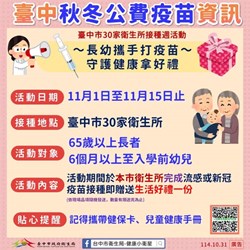 5、滿6個月以上高風險對象,包含符合公費流感疫苗高風險對象條件(高風險慢性病人、BMI≥30者、罕見疾病患者及重大傷病患者),以及結核病、失能(注意力不足及過動症、腦性麻痺、先天性缺陷、發展或學習障礙、脊髓損傷)、精神疾病(情緒障礙、思覺失調症)、失智症患者。