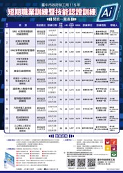網址(https://www.labor.taichung.gov.tw/)查詢,路徑為首頁-就業、創業與職業訓練-職業訓練-短期職業訓練-附件下載,詳情可電洽臺中市政府勞工局報名專線:(04)22289111分機35616詢問。